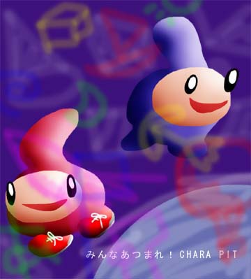 ←次の画像 前の画像→ ←No.11(23.5KB) 2000.1.1〜2000.2.5 宇宙の隅から隅まで観光中の新婚さんです。 「ここが地球か。面白そうだから降りてみようか。」 「いや、つまんなそうだからやめようよ。」 そんな声が聞こえてきそうです。 これはミレニアムを飾ったイラスト。 一番のお気に入り作品かもしれません。 でもキャラクターの名前は考えてないです。 赤はスニーカー、青は裸足。(92.8)